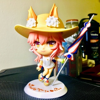 The package was fine, but beware of her umbrella. It’s not the best hinge out there so attaching the umbrella might take a few tries. There is also a stand to hold her in place, but getting her to the right pose is a bit awkward. Head is detachable, comes with a pair of kitsunemimi and a hat. Paint job isn’t the best of Tamabaes out there, but for a $16 nendoroid-ish figure don’t expect too much. Bigger than I expected though; the overall quality is better than I expected. My only gripe with her is the umbrella.