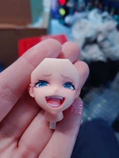 The smiling head part came with crooked upper teeth. Looks like she has a bad pair of vampire teeth, with one side noticeably higher up into the gums and the other side drooping. Compare my photo to the promotional ones. The rest of the figure looks great and I will be displaying her the masked head. Just disappointed the smiling face turned out flawed.