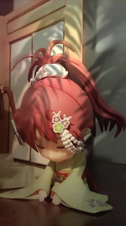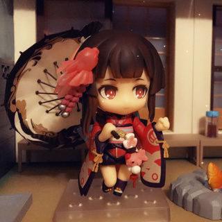 I got Kyouko mainly for her beautiful kimono and so she'd go with my other Madoka Maikos. The design that went into these nendos was really well done. Her joints and stand gave me no problems and everything poses nicely. I wish she had even more poses, but I' happy with what I got. I love that like the other Maikos her hair accessories can be moved in different angles. Her closed eye face is also very peaceful looking.
