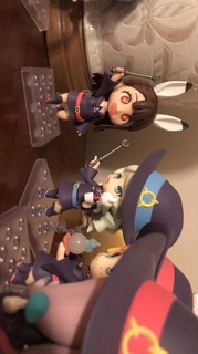 My Akko nendoroid arrived on time and in excellent condition. I love her! Some people have stated that her stand doesn't hold her up, because she's too heavy and though mine held up pretty well, if you ever wanted to make her more sturdy all you'd have to do is tighten a screw on her stands support. Akko can be posed in many cute ways. I love posing her with her rabbit ears or trying to fly her broomstick! I'm very happy to have her added to my now complete Little Witch collection <3