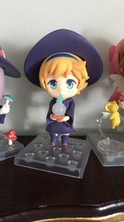 Lotte is super cute in nendoroid form (as are all of the little witch academia nendos). She comes with her signature glasses, which can be removed to reveal her lovely blue eyes and she comes with plenty of cute little goodies to pose her with. My favorite has to her crystal ball with her little fire spirit sitting on top. Her witch hat doesn't sit as evenly on her head as the others, but it's not noticeably off. To place her hat on, you just remove her cowlick and place. Her joints all fit properly and her stand has no problem balancing her. All and all she is super cute and I'm glad to add her to my collection.