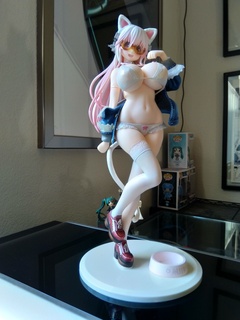 This Sonico looks really cute in person, and it's a good size, a bit larger than 1/7. The hair and cat ears aren't quite as detailed as some other Sonico figures, but it still holds up well and matches the promo photos. The base is a solid white rather than the transparent base in the promo pictures. Her jacket was tricky to remove and put back on to get the protective plastic wrapping off, but doable with a bit of effort. The milk bowl just sits freely on the base and can slide off, so plan to secure it if it might get bumped into.