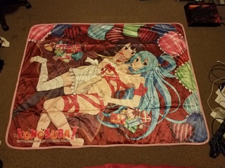 Great product. Really soft on the underside. It's not as long as I had hoped, but I got what I paid for. I still use to sleep with but only as an under blanket as it only comes up to roughly my waist(and I'm only 5'4). With that being said the image is great and really well done and I strongly recommend it for and Konosuba fan or anime fan in general.