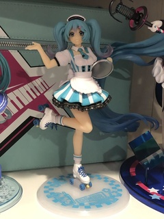 this is a cute figure but it really doesn't look anything like the promo photos. there is little to no shading and the beautiful blue on the inside of her twintails isn't there. her twintails are just one really pale baby blue. this figure is just incredibly flat and feels unfinished. kinda disappointed.
