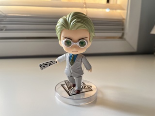 super happy to add him to my growing bungo stray dogs nendo collection!! my only complaint was that the sticker where you open the box peeled off some of the box’s writing when i tried removing it :( otherwise the figure was unharmed and in great condition