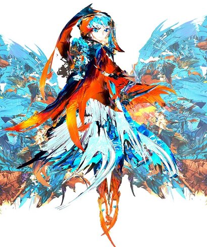 This is an image of a young woman clad in the colors of summer and fall which was molded into the form of a human using an abstract 3D model. My illustrations are basically created using combinations of 2D and 3D parts. Therefore, I am able to produce them quickly and efficiently. Total production time for this was around five hours.