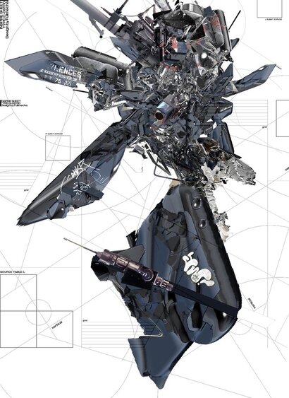 This is a mecha produced using an intertwining of various parts. This was produced in the image of the hardcore techno song “Hit ‘m Hard” by David Central, so I expressed both a ghostliness and a heroicness in the model. Total production time was three hours.
