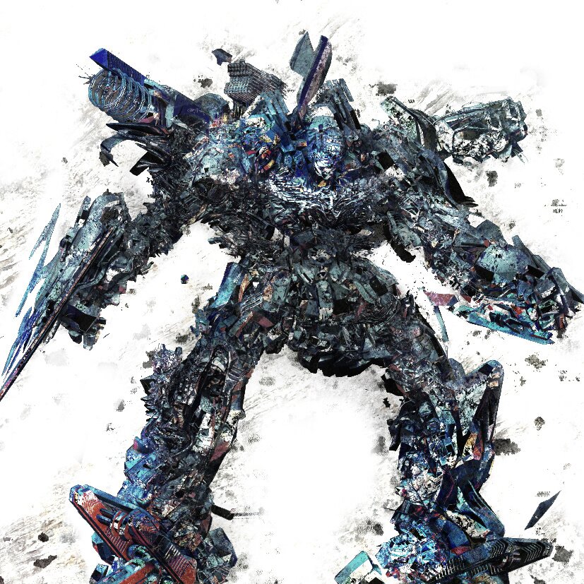 Hit 'm HardThis is a mecha produced using an intertwining of various parts. This was produced in the image of the hardcore techno song “Hit ‘m Hard” by David Central, so I expressed both a ghostliness and a heroicness in the model. Total production time was three hours.