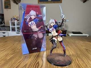 This one is my largest figure yet. It says she is 1/7 scale but she's more like 1/6 scale. My Berserker Musashi figure looks like she is half Raikou's size when siting next to each other.