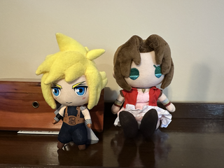 I imagined the size was gonna be a little bigger from the promotional photos. But she's a decent size plush and with some good details and sits up straight pretty well. I like the style of eyes they use for this plush which shows off their eye color well. Super cute plush cant wait for Cloud and Tifa to come in to pair her with! 9/10