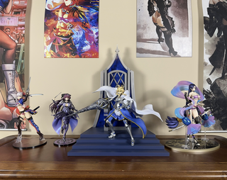 there are noticeable parts to the figurine that you can tell had to be added on and it rests kinda awkwardly it does still rest properly like a noodle stopper but I'm less confident placing it anywhere that has a long fall or hard surface below the figurine when placing it on the ledge. So I would advise that for this figure you just give it a chair or something appropriate to its size to lay on a table or desk. This figurine is more well crafted and painted than my Hokusai noodle stopper so I like the look of this figurine when placed in my room. Overall, this figurine is a nice piece to my Fate/Grand Order collection and its just too nice to let slip off the ledge.