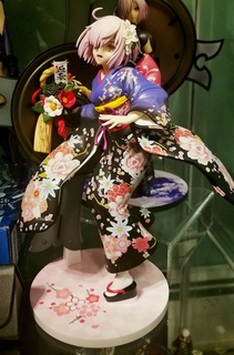 This is a fabulous replication of her illustration card. It's super detailed and remarkably outstanding when it comes to her kimono design. The gradient from purple to black is fairly entrancing to me. The floral design is also a cute touch to Mash's smiling face ^-^)/