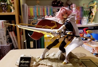 Astolfo had arrived on Wednesday while I was at class so I was pretty excited to get home. Once I got home from my night class, I opened him up, and adored him! After setting him up, I ended up running into a large problem. The base I received ended up curving upwards on both the front and back of the base (back of base isn't too bad, but the front is rather noticeable). So whenever I touch the figure, or my bookshelf shakes a little, Astolfo starts rocking back and forth a decent amount. I don't know if I'd want to contact TOM or Kotobukiya about this issue since it is a little bothersome, but other than that, the figure is fine.