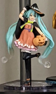 After a very long wait and several Halloween's later... Halloween Miku finally arrived just in time to put her on display for this Halloween!! I am absolutely amazed at the quality of figure she is given the price point, and can confidently say she was worth every penny and was definitely worth the wait! The base is not boring like so many other low-end figures and it has cute Halloween-y designs that pop and truly make this figure stand out. I highly recommend this statue to anyone who loves all things Miku, kawaii, and of course you Halloween and Autumn fanatics out there!