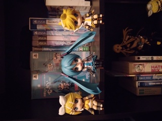 Nendoroid Swacchaos are exactly what they seem like: Nendoroids that can sit on ledges with the help of a chair (but not without because their heads are too big xD)! They're even smaller than regular Nendoroids because they're in a sitting position. Nendoroid Swacchao Miku definitely has that chibi adorableness you would expect from a Nendoroid, as well as the great paintwork and the ability to move her arms and head (or swap her parts with other Nendos)! I can't wait until Rin and Len arrive to accompany her! :3