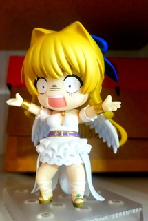 This nendo is absolutely adorable and charming, just like Ristarte. Ristarte's harmonious balance between sophistication and gruff dorky-ness is perfectly captured in this nendo! There are multiple detachable parts, including the legs, torso, and even wings. The one drawback I encountered was the way the torso attaches. It can very easily fall off, so it limits the poses you can do. The placement of where the stand connects to her back also limits the poses you can do, as he hair gets in the way at a certain point. Overall though, a great nendo to have!