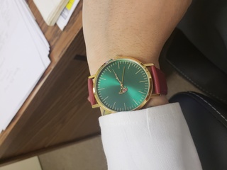 I bought this during a sale for 50% off. Overall I'm happy with the watch. What you see is what you get. A basic but stylish design. The strap fits most wrist sizes big or small. The material feels like leather, could be plastic but I'm not 100% sure. Only time will tell how long this lasts. If batteries die, they reccomend bringing it to a watch specialty shop to change it.