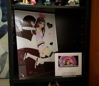 except you know what you'll get. Included in the box are 10 mini shikishi boards with a unique image of Kizuna Ai on each. The images are identical to the buttons as seen in my photo.