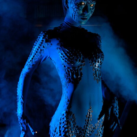 Mystique - X-MenThis outfit took a considerable amount of time to make. Because it was made using raw materials and rubber, the costume began to degrade rather quickly.