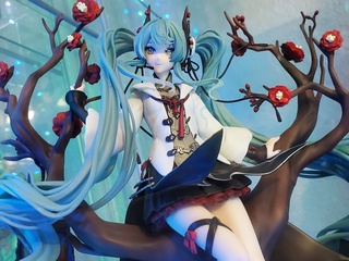 After a year long delay, she's finally here! And boy, she was worth every second of the wait! The base comes already attached, and I love that it actually compliments the theme of the overall design. There's only two separated pieces that need attaching; the lantern hanging on the branch, and her tail-like ornament. Yes, that's right, her iconic twintails are pre-attached! I can't stress how some figures suffer from loose twintail sockets, so it's a welcomed change. The paint and finish is beautiful, the amount of detail is amazing!