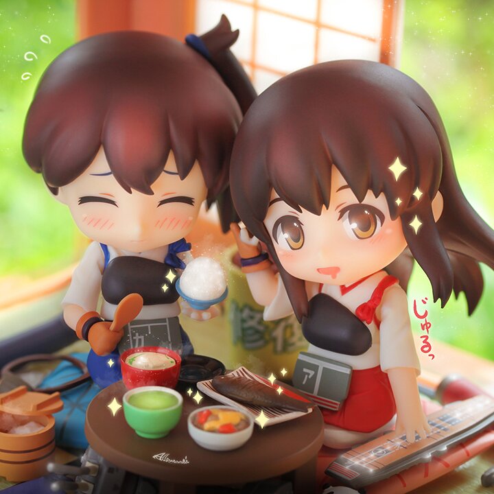 Akagi and Kaga: Breakfast Time!"Ohayo Admiral !"..."It's Breakfast taimu !" *drool*... "do you want to join us?!" *drool*