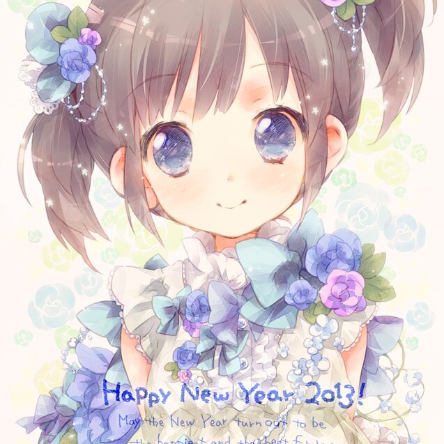 NewYear2013I drew this illustration of a girl with asymmetrical twintails, an original character, while thinking about wanting it to be useable as a New Year’s card and it looking new by having been freshly colored.