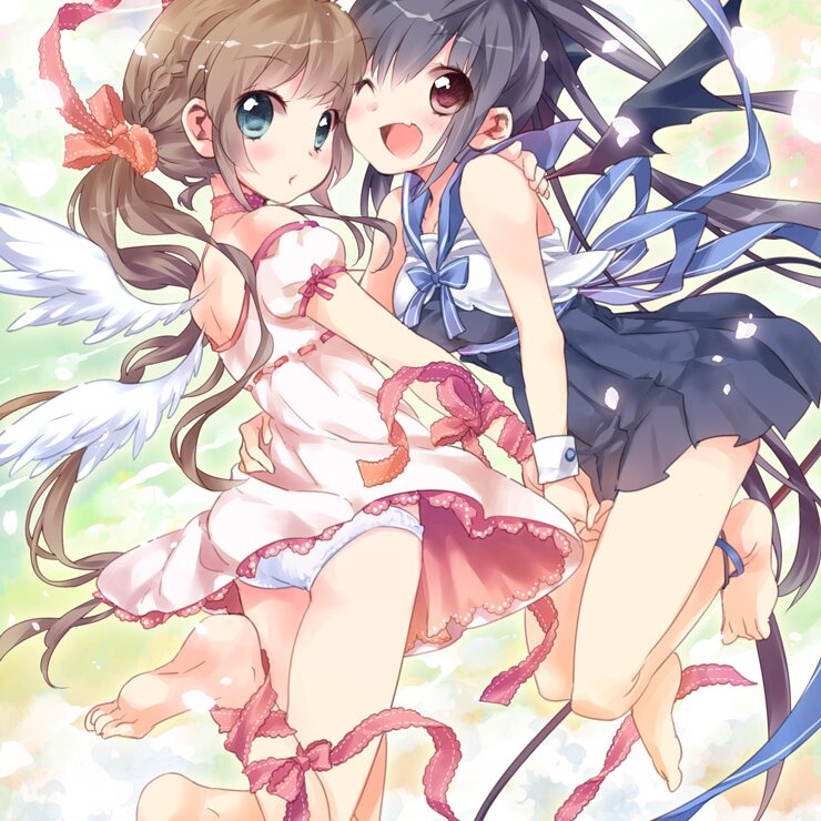 HaneHaneAn angel and a demon. I drew this illustration while thinking “I want to draw it including all the features I like!” such as the duo’s small wings and light skirts.