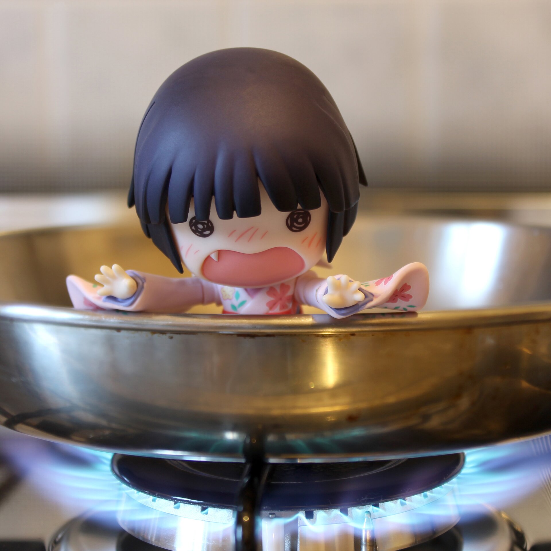 Too hot!Yune is in a terrible situation. Like all small children, she wanted to browse around and ended up in the pan!!!