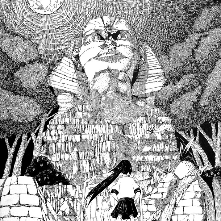 YearningI wanted to draw a cool-looking sphinx that appears suddenly within the forest. Truth be told, I want to see a sphinx like this one. The title “Yearning” doesn’t apply to the girl, but rather the dog’s “yearning” to see it. I tried using experimental line patterns and gradation in the sky, but I don’t think it worked very well...