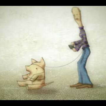 Dance Animation 2001, made by Kazuhiro HotchiSelf produced anime from school years, a pig wearing headphones dancing to the music