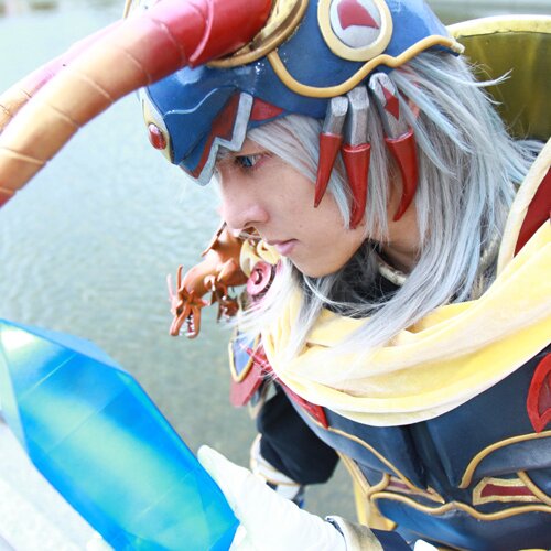 Warrior is a cool character who pushes forward once he sets his path and isn’t fooled by the invitation of his enemies. I have loved FF for a long time, and I challenged myself to make a costume of FFI’s Warrior of Light as he appears in Dissidia. I made the costume to match that of the EX mode design on the FFI package. For props, I made the crystal and dragon that also appear on the FFI package.- 35716