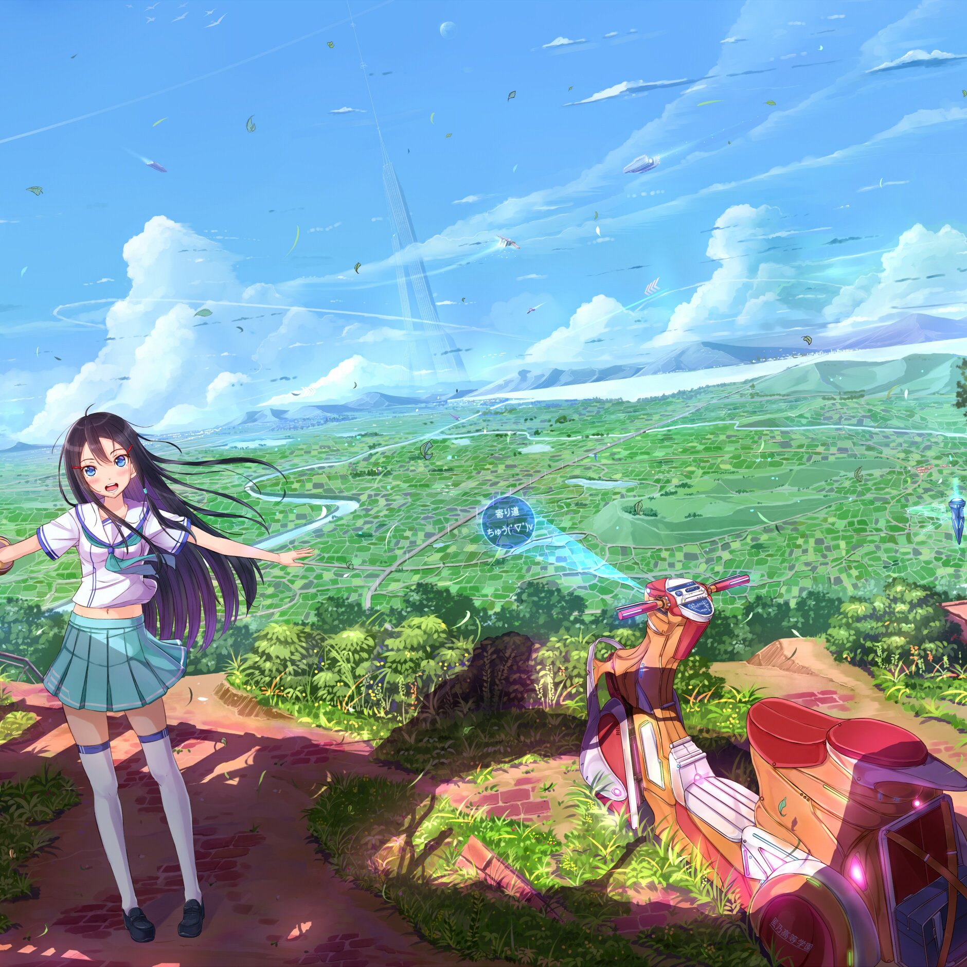 Astronaut and GirlI had an urge to draw this picture when I was watching the MV for "Uchuuhikoushi e no Tegami" by Bump of Chicken. I drew its world to be reminiscent of the works of Makoto Shinkai, a director I love.