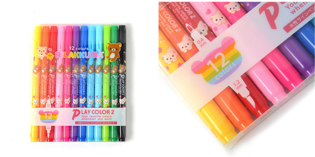 Rilakkuma Play Color 2 Double-Ended Color Pen Set (12 Colors)