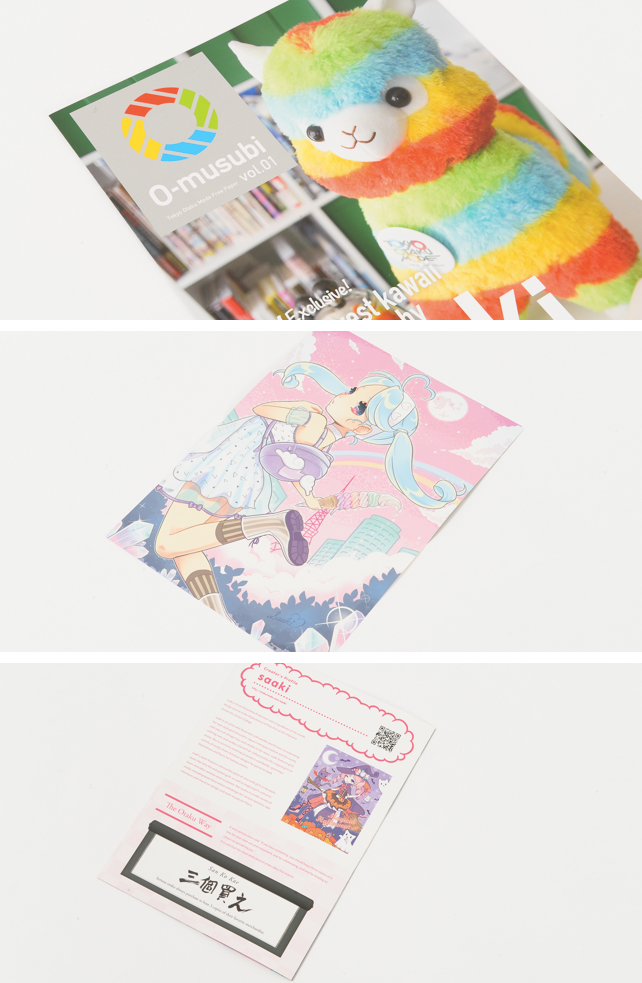 Whenever you place an order on OtakuMode.com, your package comes with a few bonus goodies called omake in Japanese! And now we’ve created a new class of omake: leaflets! On the cover of this leaflet is our exclusive TOMpacasso plushie and on the inside is a poster by TOM Special Creator saaki!! (*^0^*)