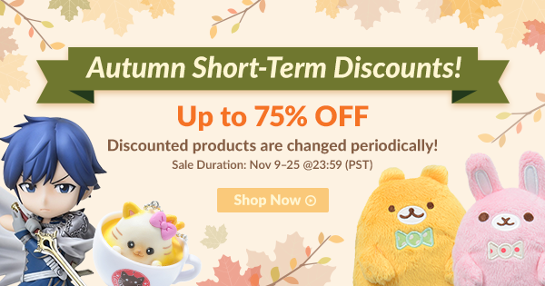 We’ve got a short-term Autumn sale to keep you warm and heated with fluffy plushies, exhilarating figures and other otaku goods.
