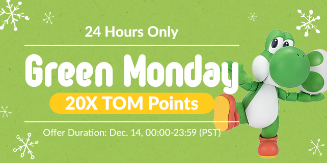 Usually, a subtotal of $100 earns $1 in TOM Points… But today, you’d earn $20 in TOM Points!!! Don’t miss this bargain opportunity! Offer Duration: Dec. 14, 00:00-23:59 (PST)