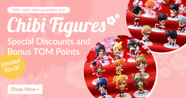 For a limited time only, enjoy bonus TOM Points on chibi figures and tiered display stands, as well as special discounts on select items! Offer valid while stocks last!