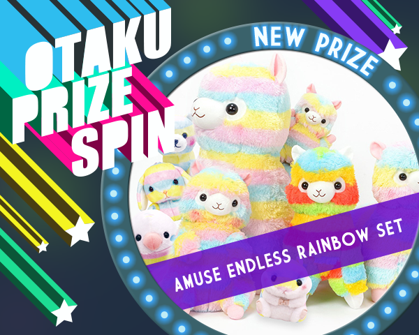 This week’s big prize is a huge bundle of rainbow plushies from Amuse! |