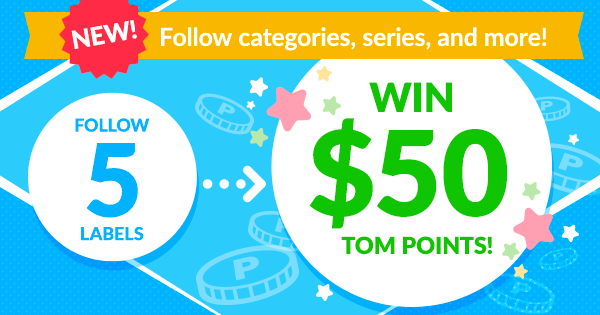 follow 5 or more labels to earn $1 in TOM Points guaranteed!