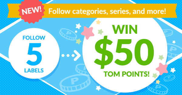Plus—start following 5 labels before September 30, and you’ll get $1 TOM Points + a chance to win $50! |