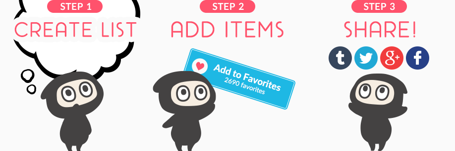 | Share your lists for a chance to win points toward one of your Favorited Items! |