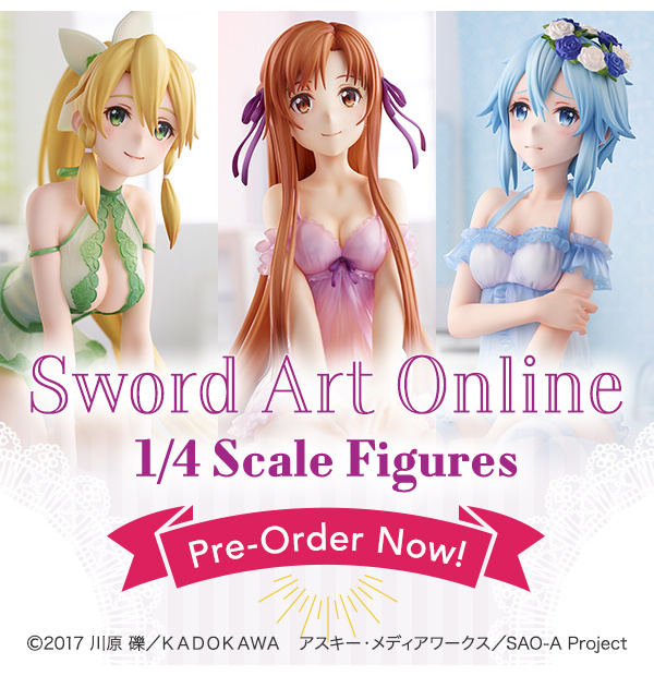 | Brace yourselves: these lovely 1/4 scale figures will absolutely dwarf the rest of your SAO collection. Only purchasers of the Complete Set—which has its own dedicated product page—will receive special bonus face parts for all 3 characters (details TBA!). |