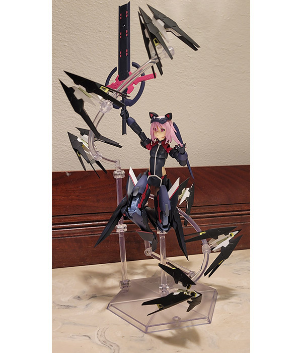 From the Japanese mobile game this is the main heroine's Alternative 4-Star (highest) form. I think Max Factory has really outdone themselves with this one with its custom-ability. Particularly with the recreation of the character's ultimate summoning 6 drones. The larger base offers a solid foundation while the clear part suspension for the drones offers versatile positioning.