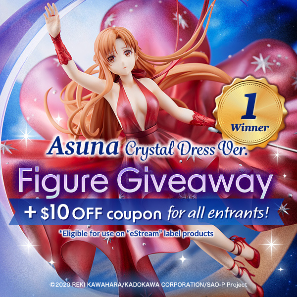 | [New Giveaway] Enter for a chance to win this graceful Asuna (once she gets released), and as thanks, you’ll receive a coupon good to use on any eStream item on the TOM Shop. The lucky figure winner will get both Asuna and a coupon code, of course! All coupons will be sent out at the end of the month. |