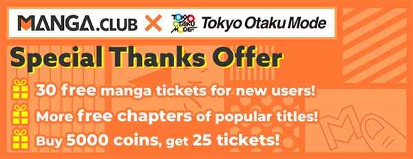 | The latest MANGA.CLUB promo will continue until April 6 (JST). If you’re a first-time visitor, you’ll receive a huge bonus gift of reading tickets! |