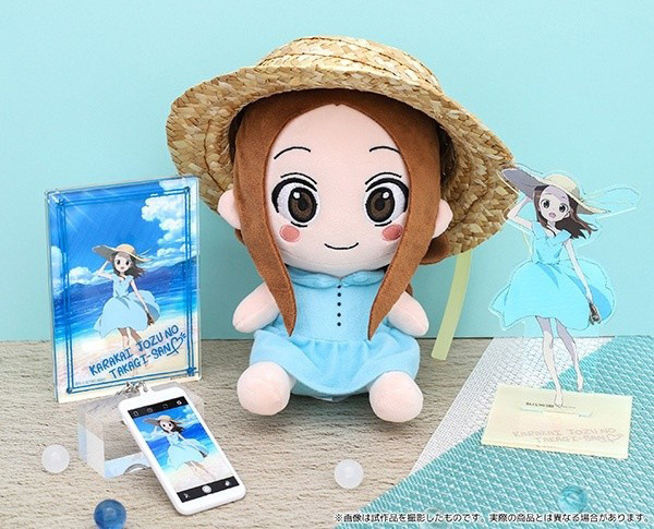 | Come by and explore new plushies—such as this adorable Takagi-san plush set, which also includes an acrylic stand, bromide, phone charm, and photo frame. |