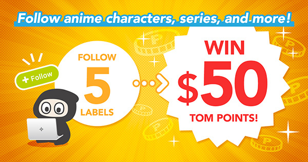 | Want to be the first to know about products featuring your favorite anime, game, or more? Simply follow your preferred series or character labels on TOM to get automatically notified once we add relevant new items! And right now, starting to follow at least 5 labels will qualify you to earn TOM Points, too. Tap for full details! |