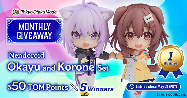 | [Giveaway] Enter now for your chance to win both Okayu and Korone! And even if you don’t, you might end up being one of the additional lucky winners to receive $50 TOM Points each. Entries will close May 31, 2022 (PDT). |