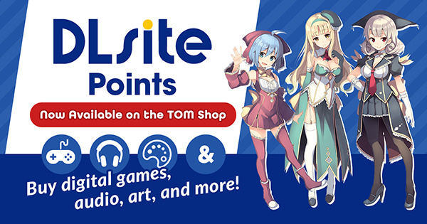 | As a reminder, DLsite Points can also be purchased from the TOM Shop, and added to your DLsite account via a unique serial code. It’s very similar to buying and redeeming a digital gift card! |