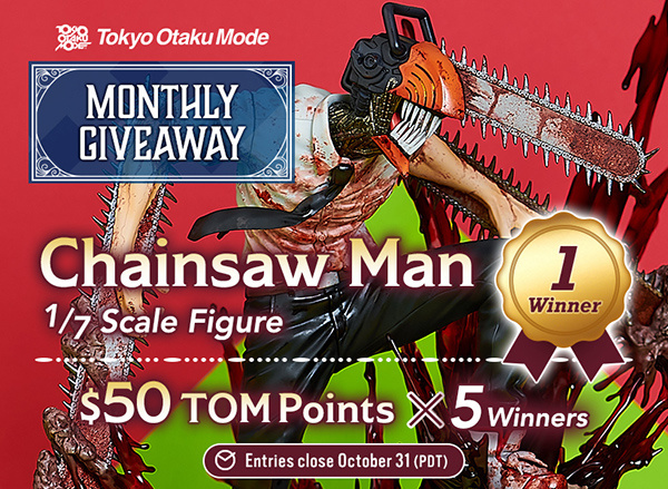 | Two big giveaways will close at the end of the month: one for this incredible Chainsaw Man figure, and another for a very different (but still striking!) figure of Hatsune Miku. If you’re interested, be sure to enter both! |